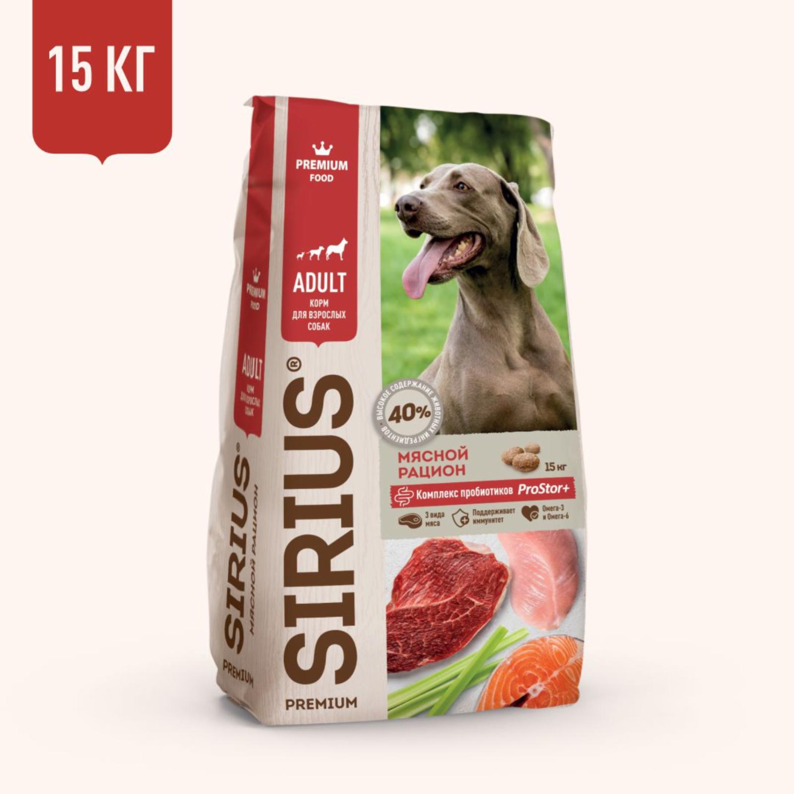 Купить Sirius Сухой корм для собак мясной рацион 91835 15.000 кг 60051 в магазине zoostar.spb.ru вы можете заказав доставку по телефону 8(812)642-94-32Оставьте свой отзыв