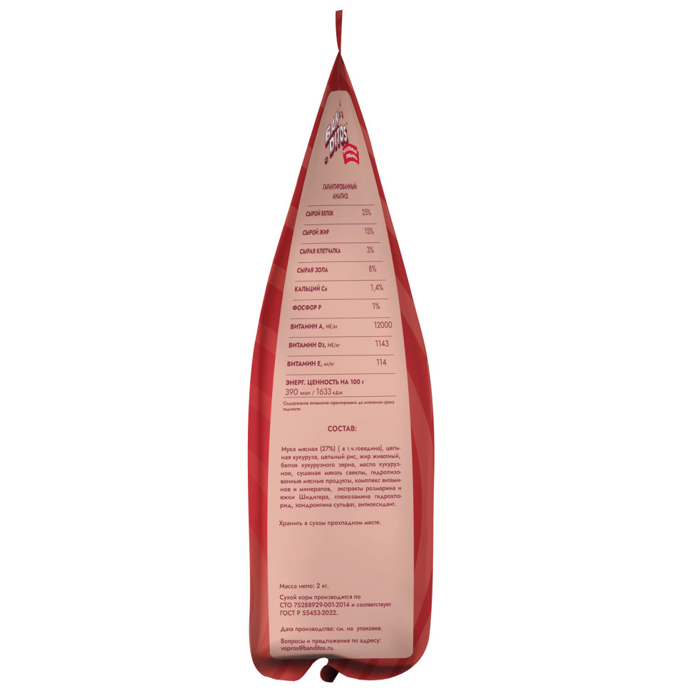 .Характеристики:.Тип товара:Корм.GTIN:4627079682928.Бренд:Banditos.Вес:2 кг.Размер:Для всех пород.Упаковка:Назначение:Повседневный.Страна производитель:Вкус:Тип корма:Сухой.Класс:.Возраст: